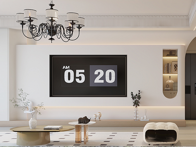 米白基调搭配黑铜复古吊灯,雕花吊顶与艺术摆件尽显优雅。日常会客休闲时,既借复古家具营造社交仪式感,又以柔和色彩传递松弛氛围,是兼具优雅与温度的互动场域,适配品质待客与家庭欢聚。