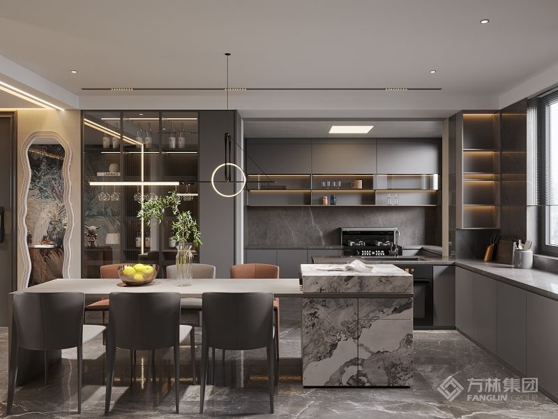 “轻”和“奢”在材质的巧妙的运用下达到平衡,在与木质、玻璃、陶瓷等元素的碰撞中,也能演绎出不一样的美,让人感觉冷硬的同时又有一种文艺的气质