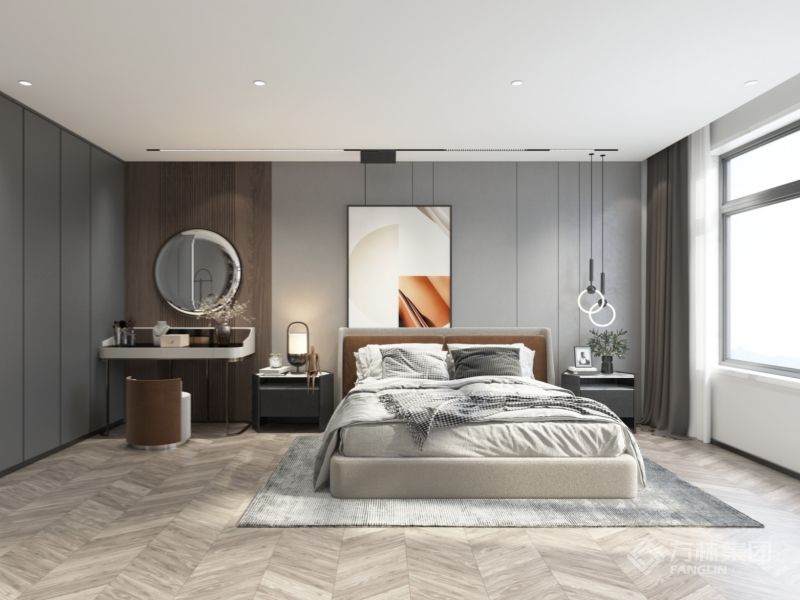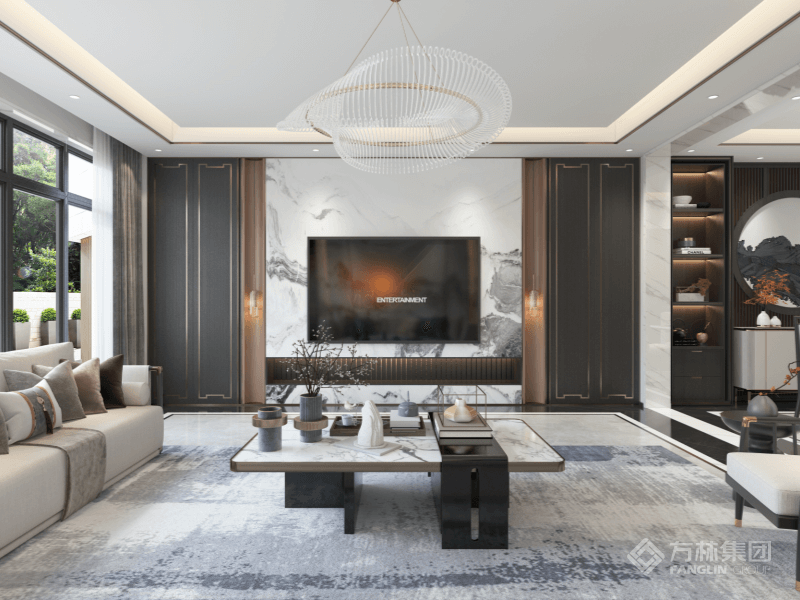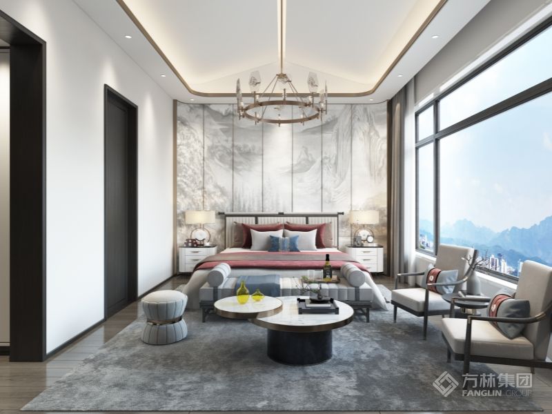 本案以简约与繁复交错融合为主线,家具的设计追求线条简洁,不会使用大量的繁复工艺,虽不如传统中式奢华大气,但更具设计感,线条流畅明朗且清新自然,营造的是极富中国浪漫情调的生活空间。