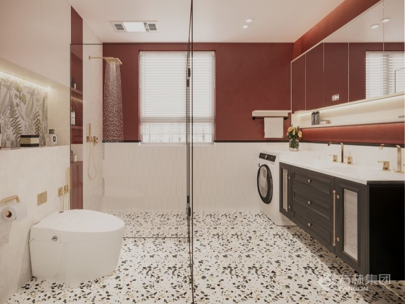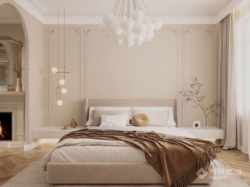 以奶咖色打底,整体采用低饱和的色彩,让空间整体呈现被细腻奶油包裹的温柔氛围