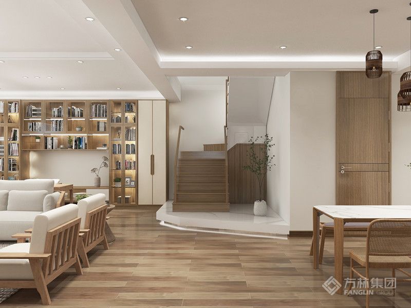以澄净无瑕的白为主,辅以原木打造出通透灵动却不失力量的气场。给人洗净铅华的轻松感和舒适感。整体色调由白色和原木木色构成,这样简约统一的空间,为生活哲学增添了一笔意外之获。