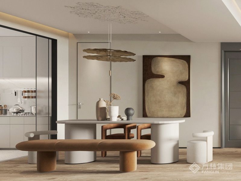 舒适写意,回归生活本真,以更纯粹的设计角度去组构空间,注重空间的串联功能。以温柔的米灰色为主,明朗的奶油黄色为辅,塑造出干净欢快的空间格调,达到“简约风也可以活力俏皮”的装饰效果。如同日本设计大师原研哉所言“诸如一只打破的鸡蛋蛋黄之澄澄金黄,或是一盏茶杯中满盈的茶水,都不只是颜色。它们其实是在一种更深的层次上,带着其物质本性中所固有的属性,诸如质感与味道等一起被看到,人们是通过这些元素的组合看到颜色的“。